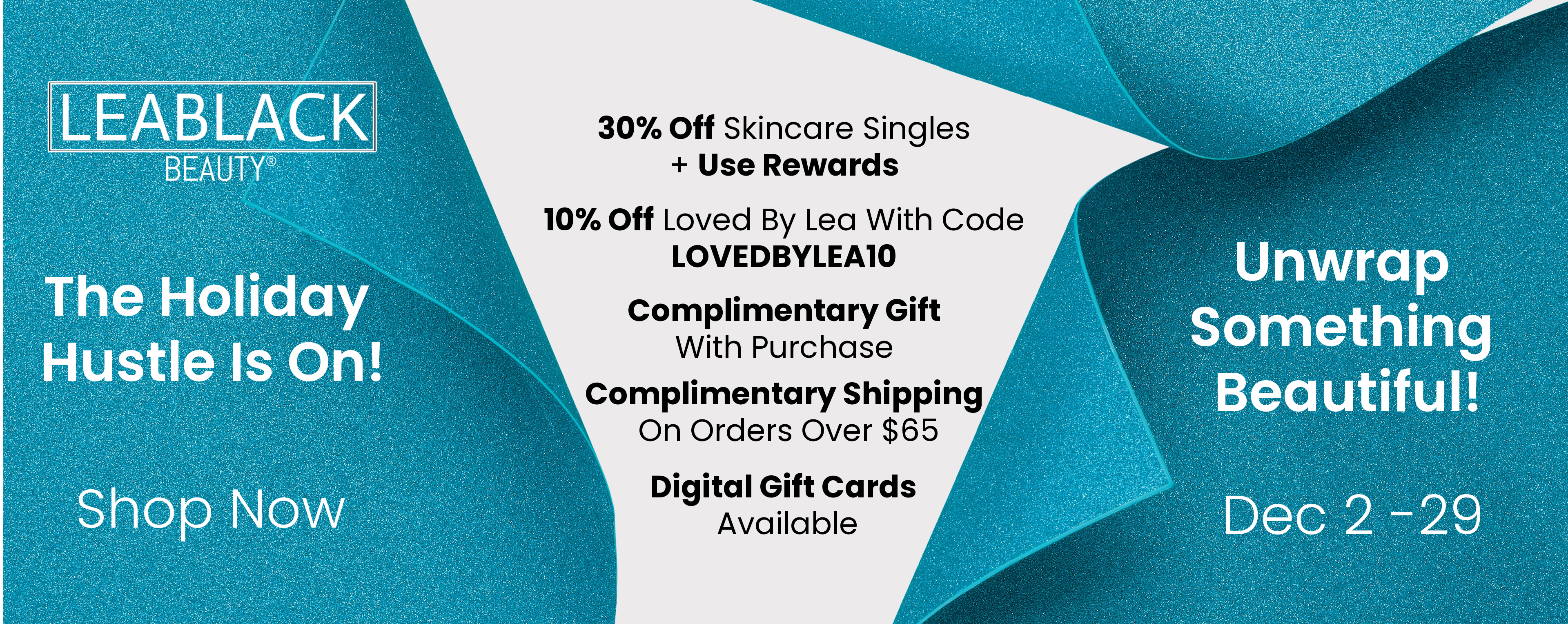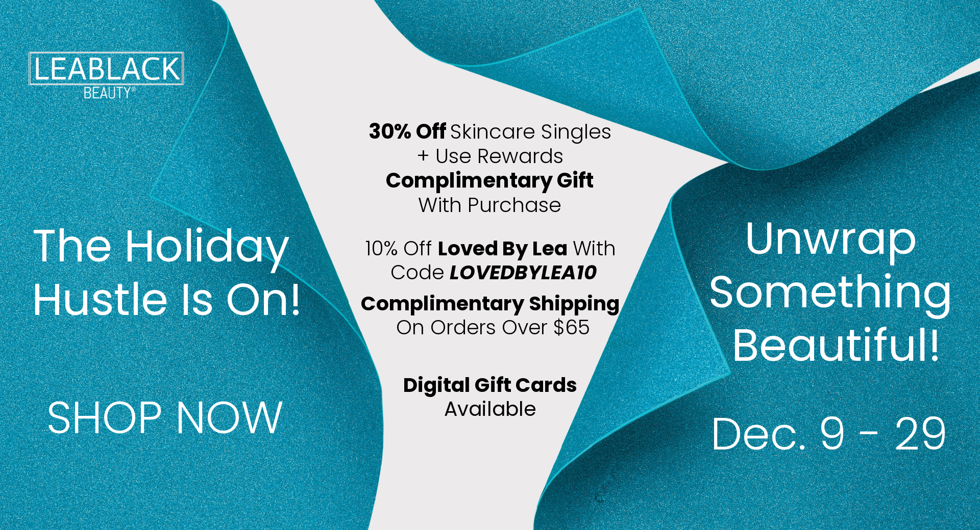 Shop the Lea Black Beauty Holiday Hustle Collection now to save on skincare singles, treat yourself to a complimentary gift, and knock out your holiday list with luxe designer resale and easy digital gifting—all in one place.