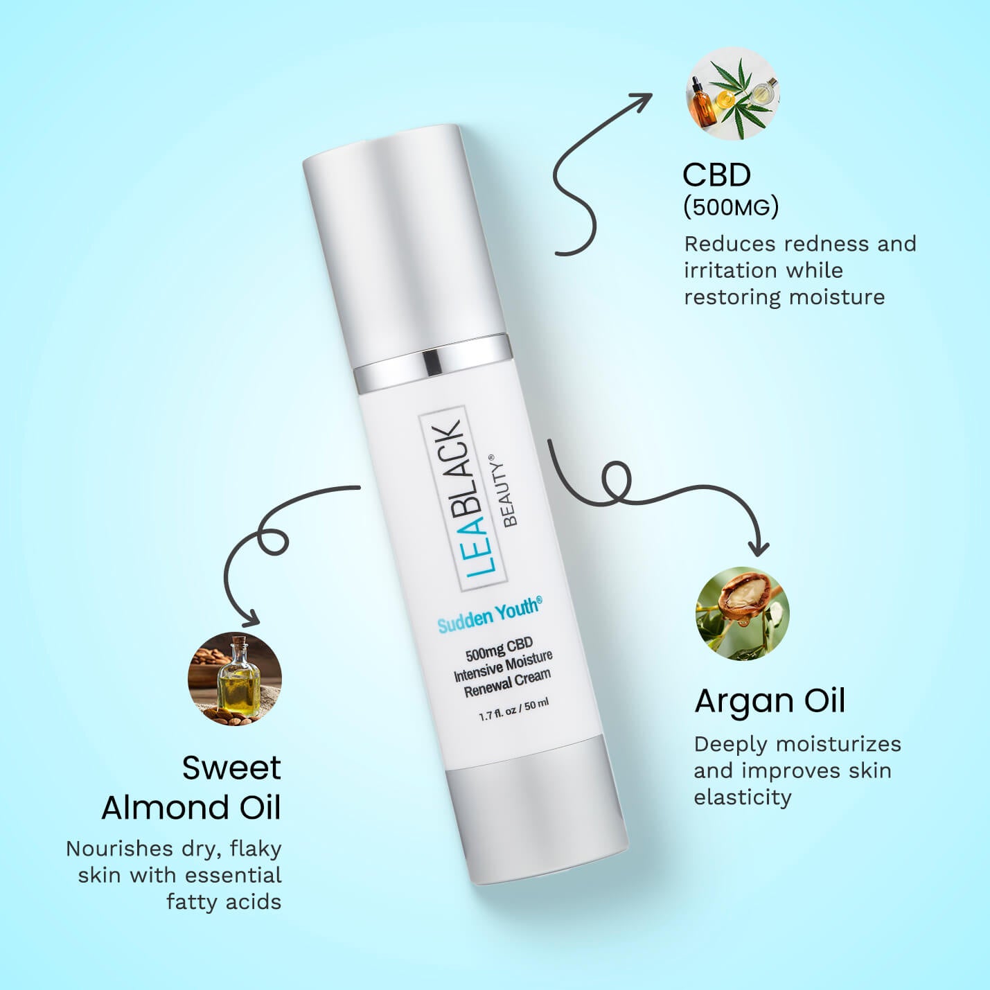 You’ve probably heard the buzz about CBD skincare products, but have you tried ours? This cream comes packed with a generous 500mg of natural, hemp-derived CBD, as well as a variety of other synergistic ingredients that complement CBD’s anti-inflammatory, antioxidant, and anti-aging properties. Like all Lea Black Beauty® skincare products, this hemp face moisturizer is all-natural, cruelty-free, never tested on animals, and all ingredients are ethically sourced from around the world.