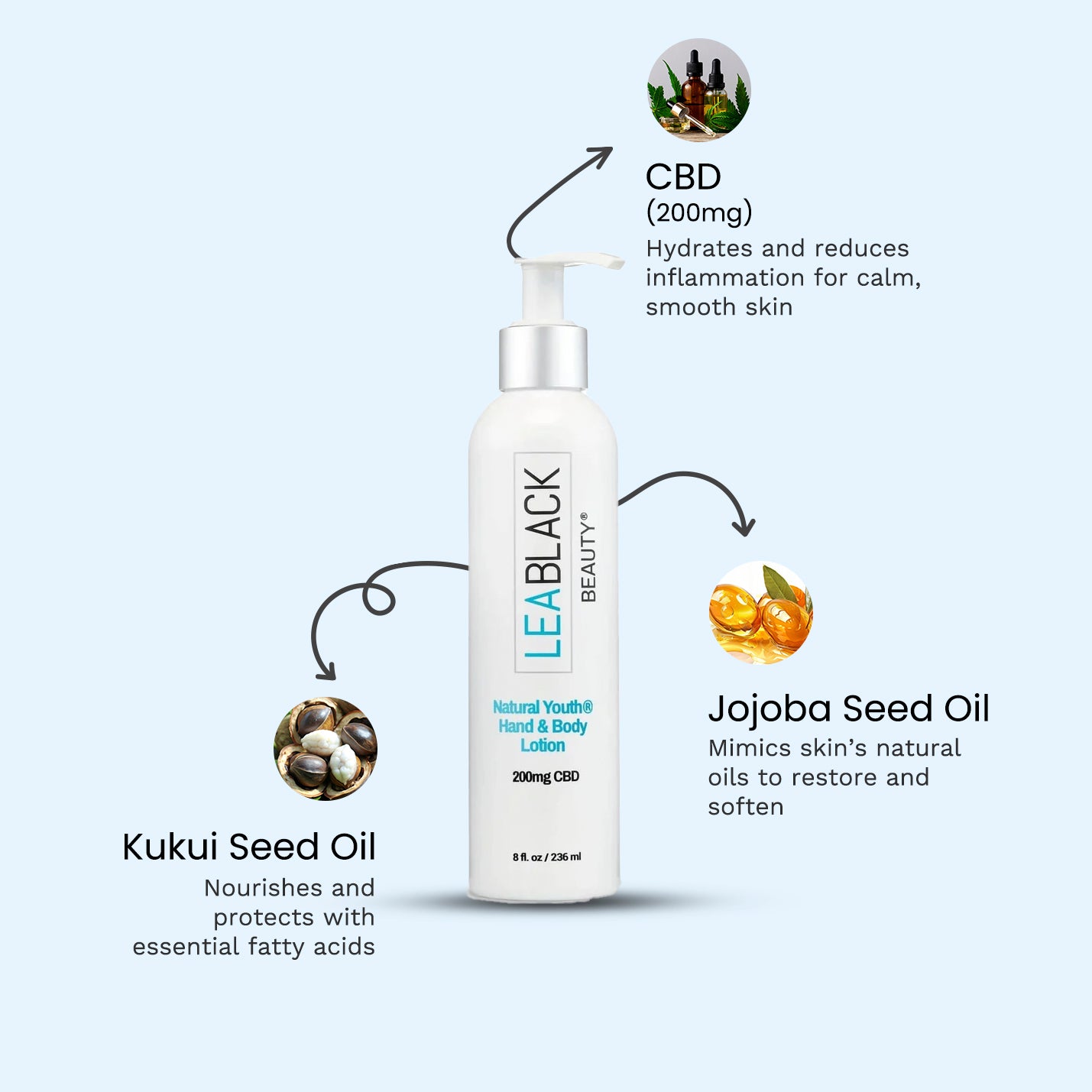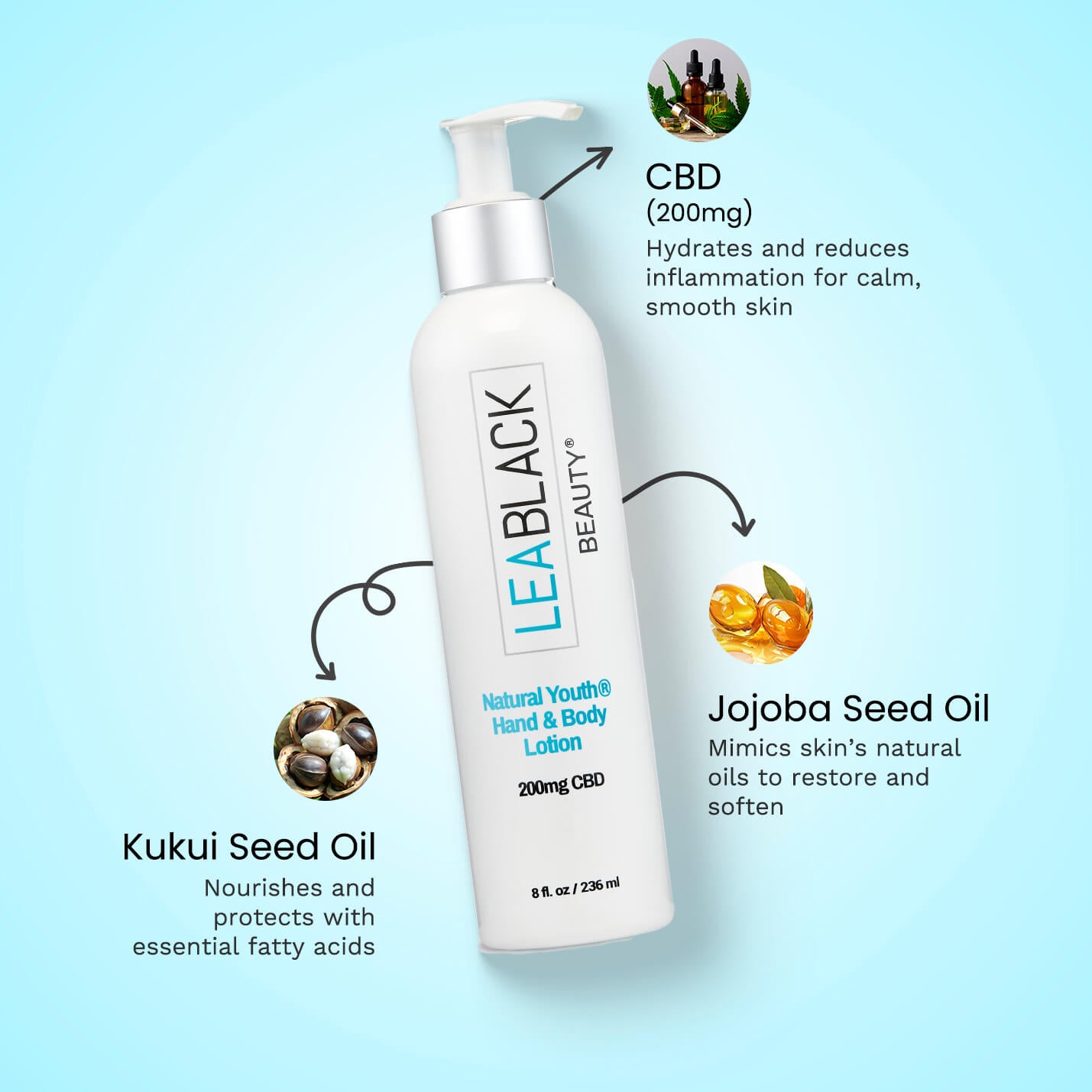 Suitable for all skin types, this CBD daily lotion is the perfect go-to anytime cream to apply after showering or whenever your skin feels dry or irritated. And CBD is known for protecting skin from environmental stressors, so apply this product generously before spending time outdoors. Using Lea Black Beauty® Natural Youth® 200mg CBD Hand & Body Lotion is a simple yet luxurious pleasure that elevates your lifestyle. The silky-smooth texture is divine, and it absorbs fast without leaving any greasy or sticky residue behind. Treat yourself!