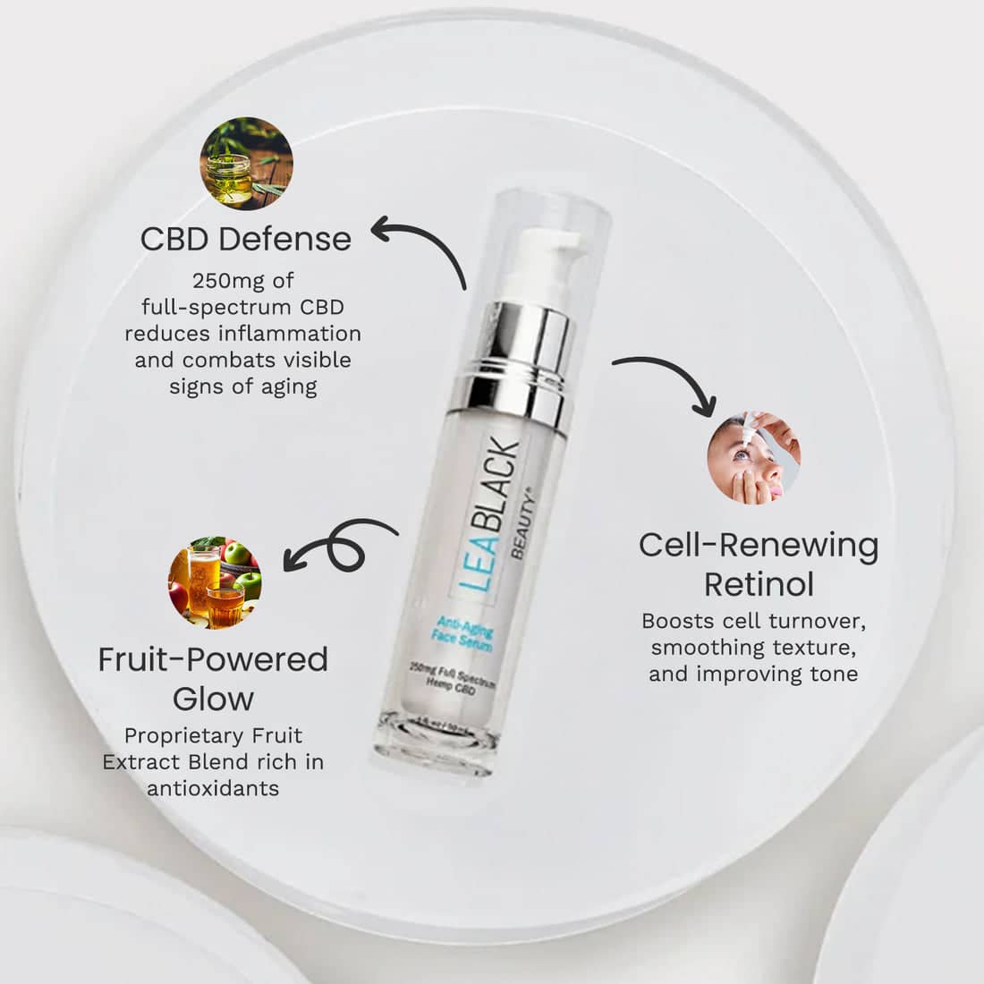 Water, Glycerin, Butylene Glycol, Dimethicone, Cannabidiol, Phenoxyethanol, Polysorbate-80, Allantoin, Ethylhexylglycerin, Hydrolyzed Elastin, Aloe Barbadensis Leaf (Aloe Vera Gel) Juice, Citrus Grandis (Grapefruit) Seed Extract, Soluble Collagen, Ascorbic Acid, Sodium Hyaluronate, Cucumis Sativus (Cucumber) Extract, Glycyrrhiza Glabra (Licorice) Root Extract, Retinyl Palmitate, Polyacrylate-13, Polyisobutene, Polysorbate 20, Helianthus Annuus (Sunflower) Seed Oil.