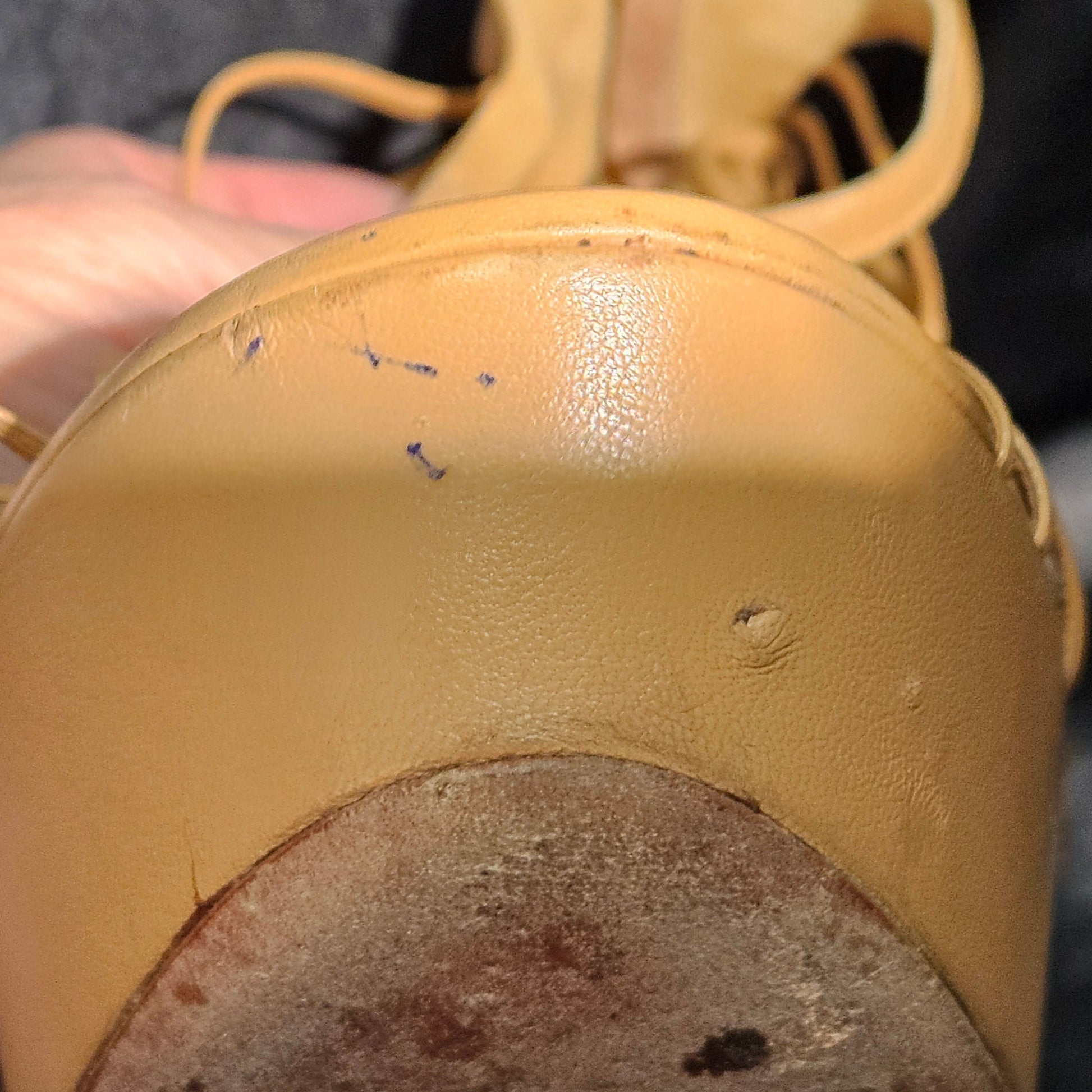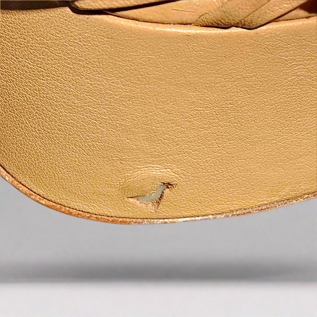 - Very Good (B Grade). Only worn a couple of times. Light scuffing on the sole and a small scuff on the platform. One small piece of the leather has a cut—easily repairable. Priced accordingly. Please refer to the photos for all details.