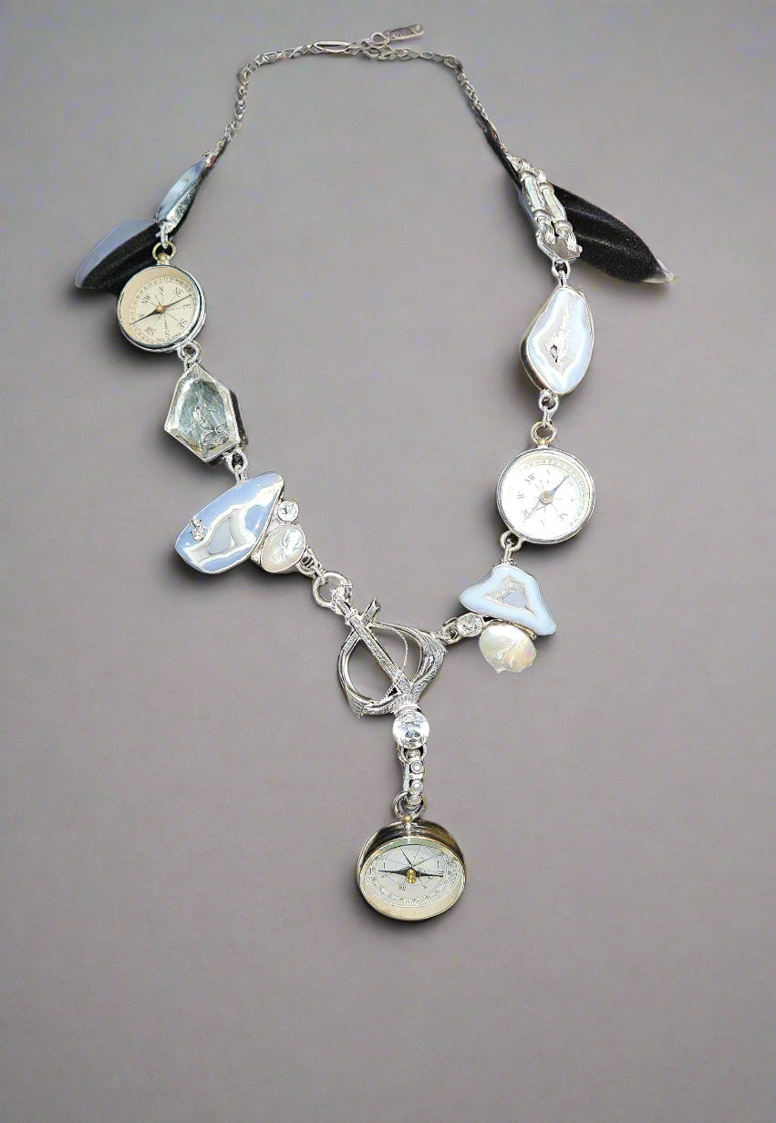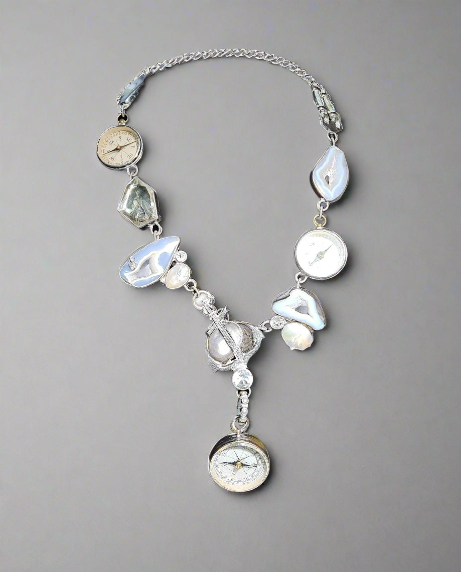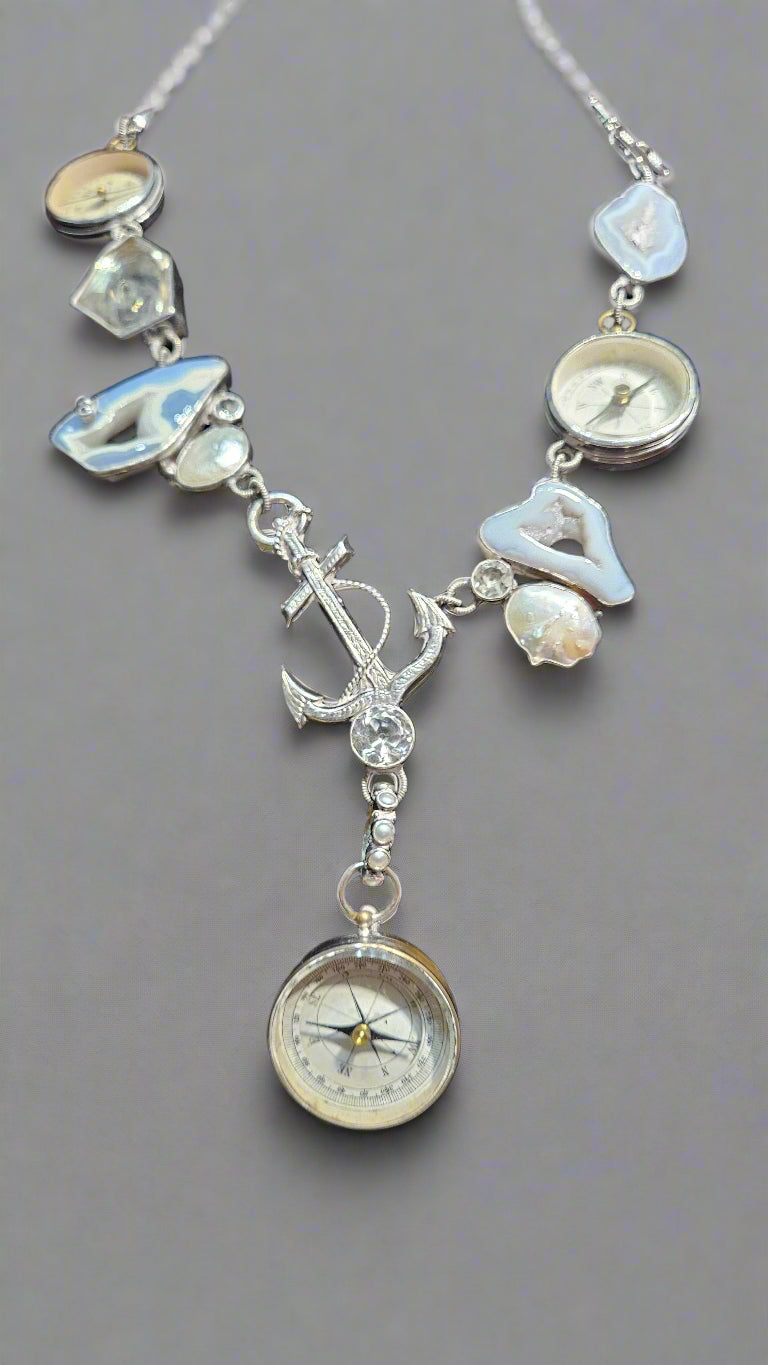 nautical jewelry, statement necklace, compass pendant, anchor necklace, blue agate necklace, Neiman Marcus costume jewelry, designer statement piece, yacht photoshoot accessory