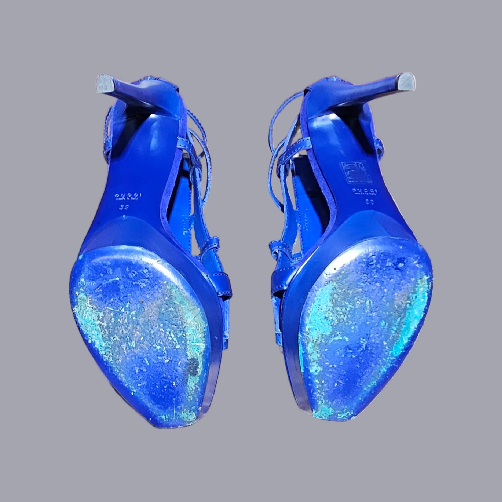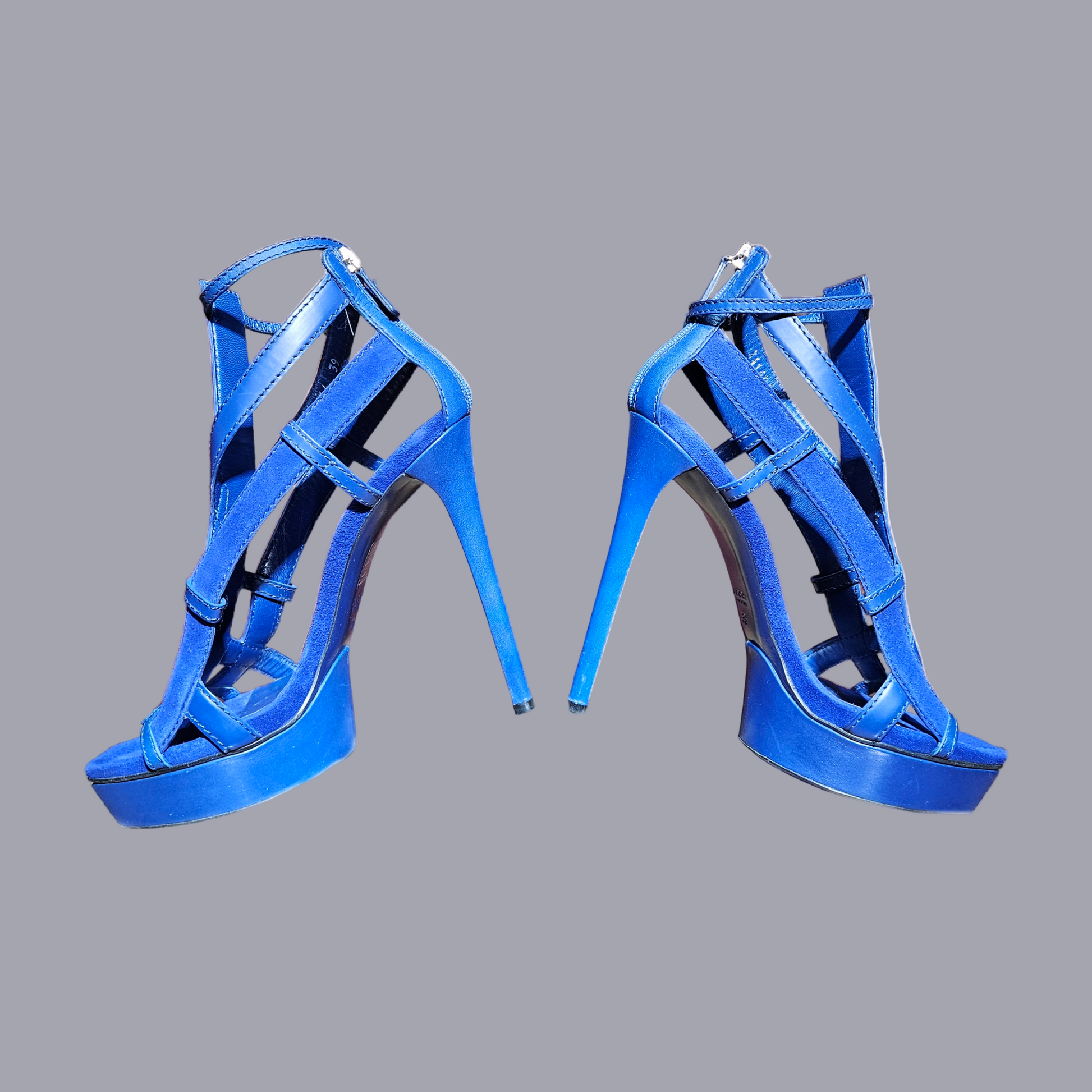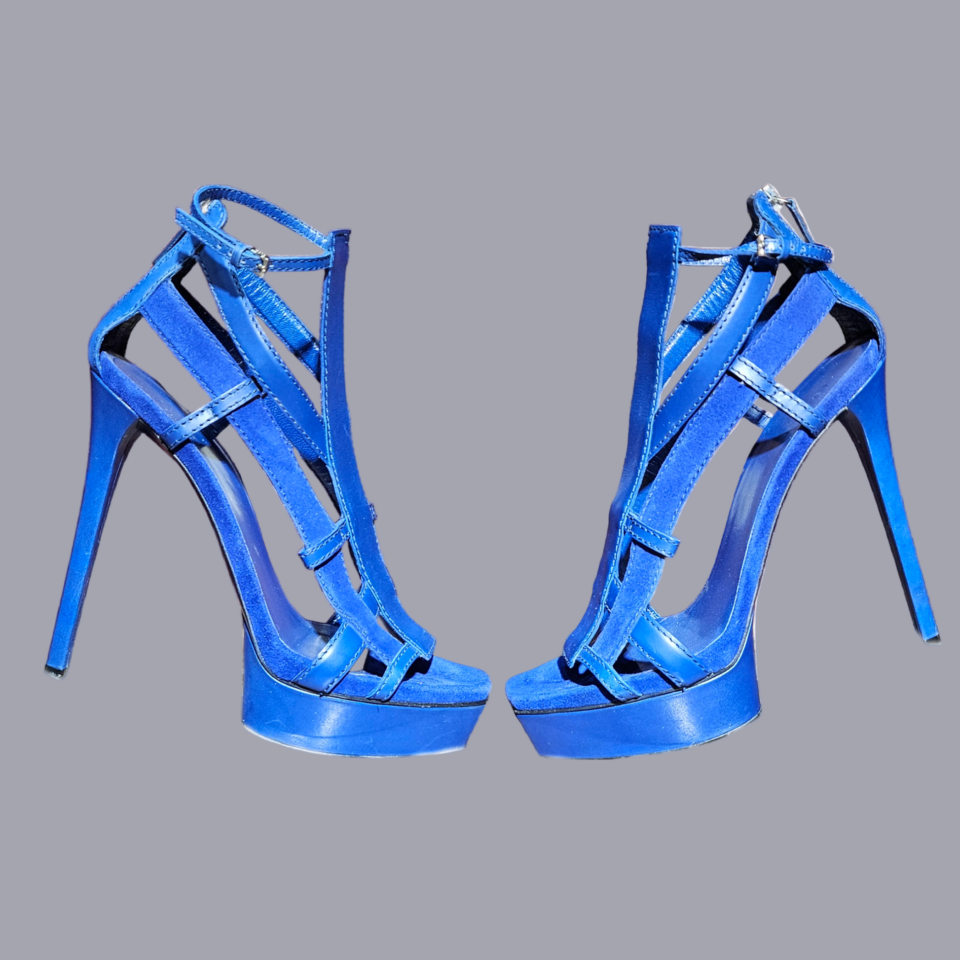 - Runway-worthy statement heels in an electrifying cobalt suede. The platform balances the height for a surprisingly wearable, leg-lengthening silhouette—perfect for evenings, events, or any look that needs a luxury pop of color.