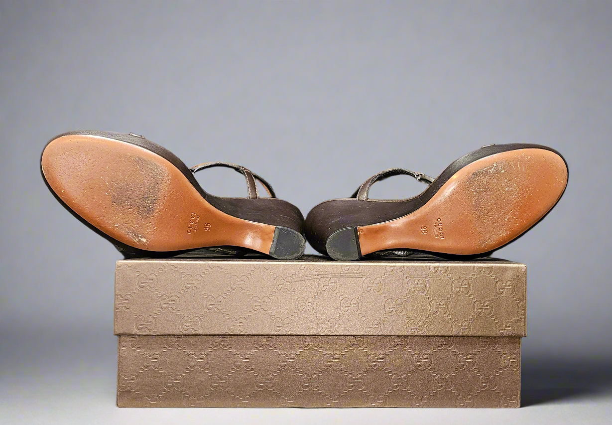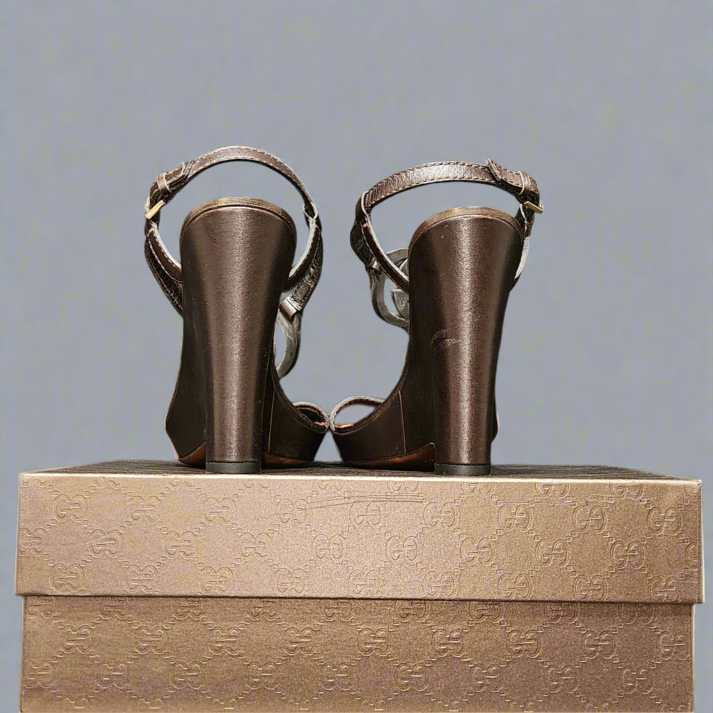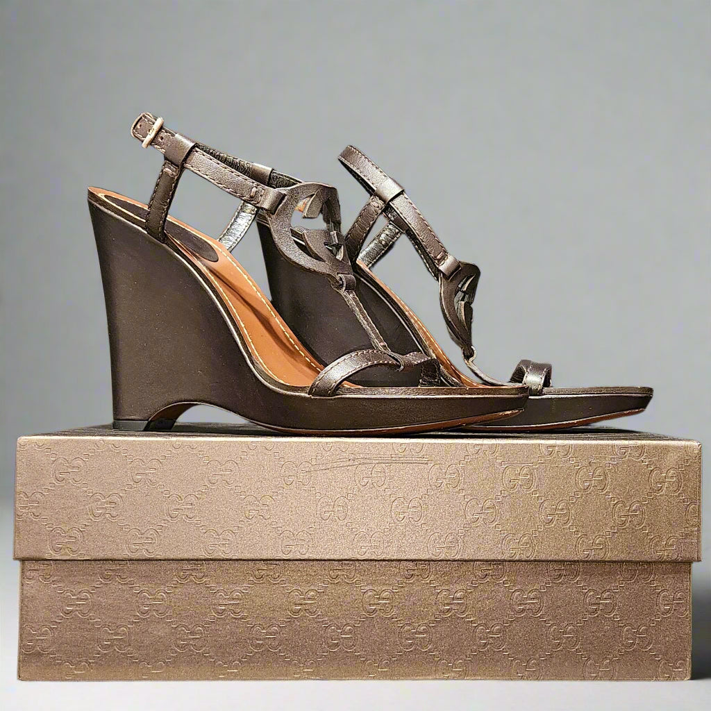 Gucci Women's Brown Leather Wedge Sandals – Size 39 (US 9)